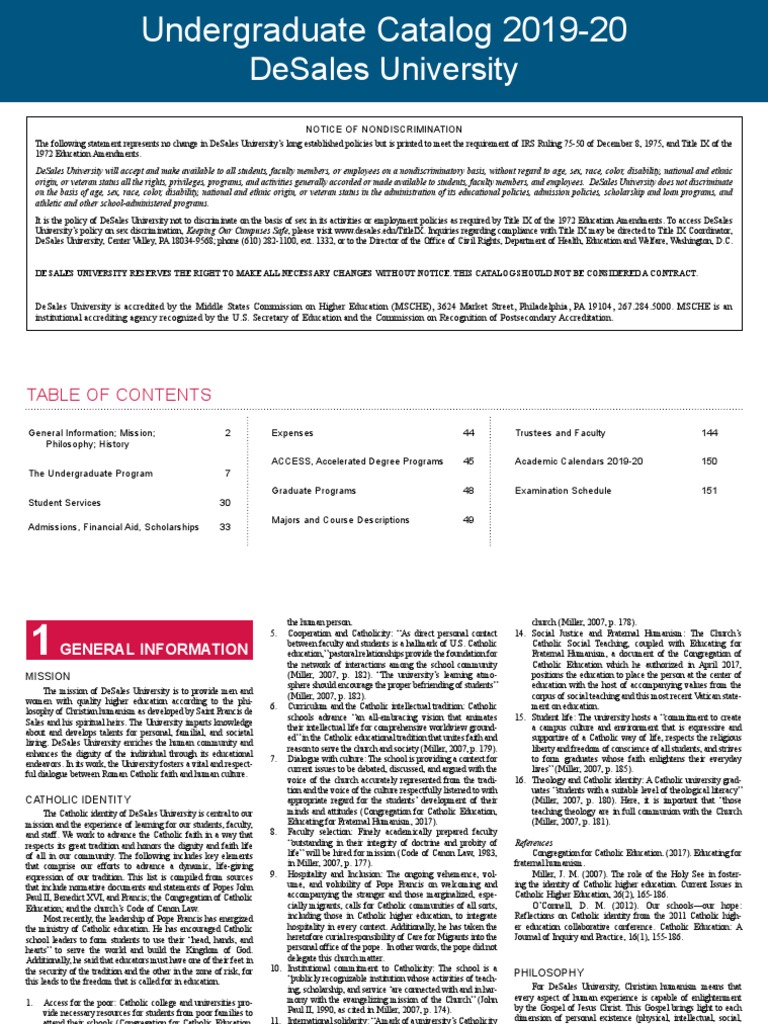 Desales Undergrad Catalog Catholic Church Pope Francis